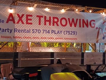 Mobile axe throwing trailer, 2 lanes of axe throwing fun. Axes, target and instructions included. Price includes local delivery to your home or venue. Completely enclosed cage for safety. Safest axe throwing venue on the East Coast. Competitors charge by the hour, we give you a full day.