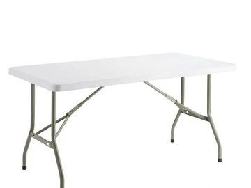 Lightweight polypropylene 6 foot table, indoor/outdoor, seats 6-8 people. Linens available, white $5.95 each